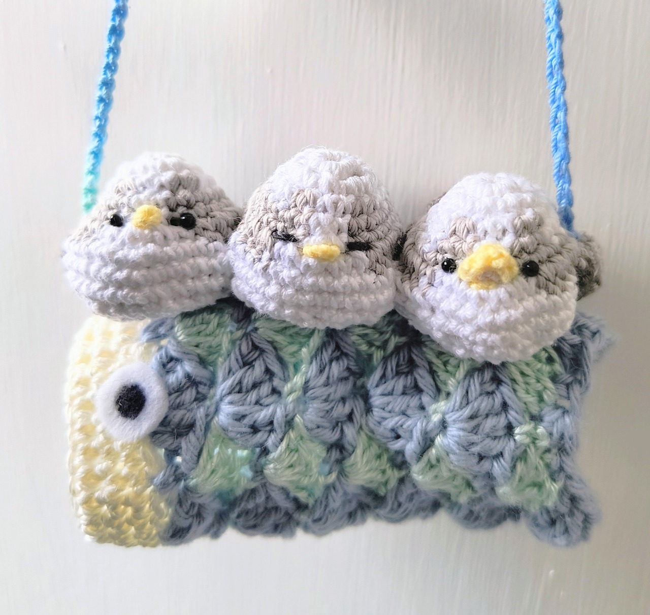親鳥のシマエナガが一緒に空を泳ぐ姿をイメージして制作しました。