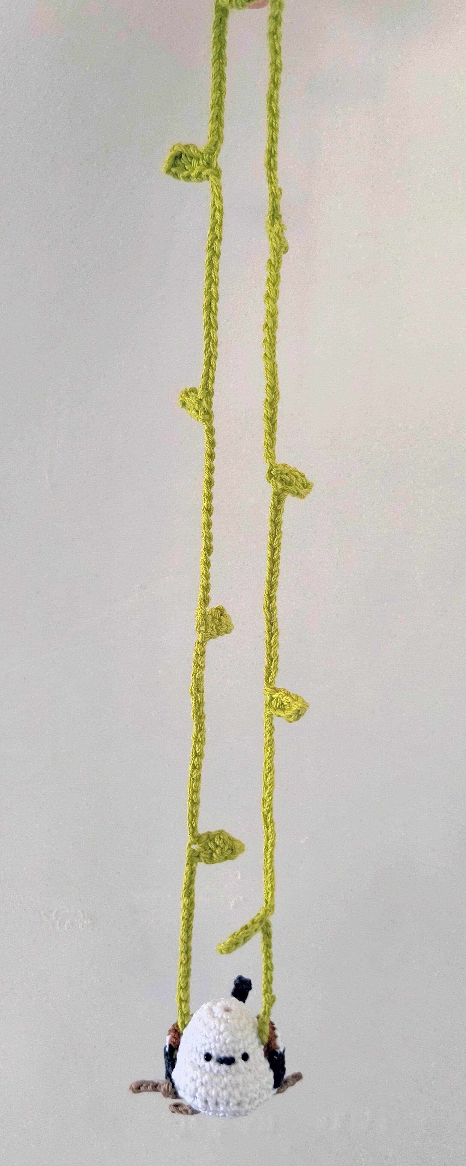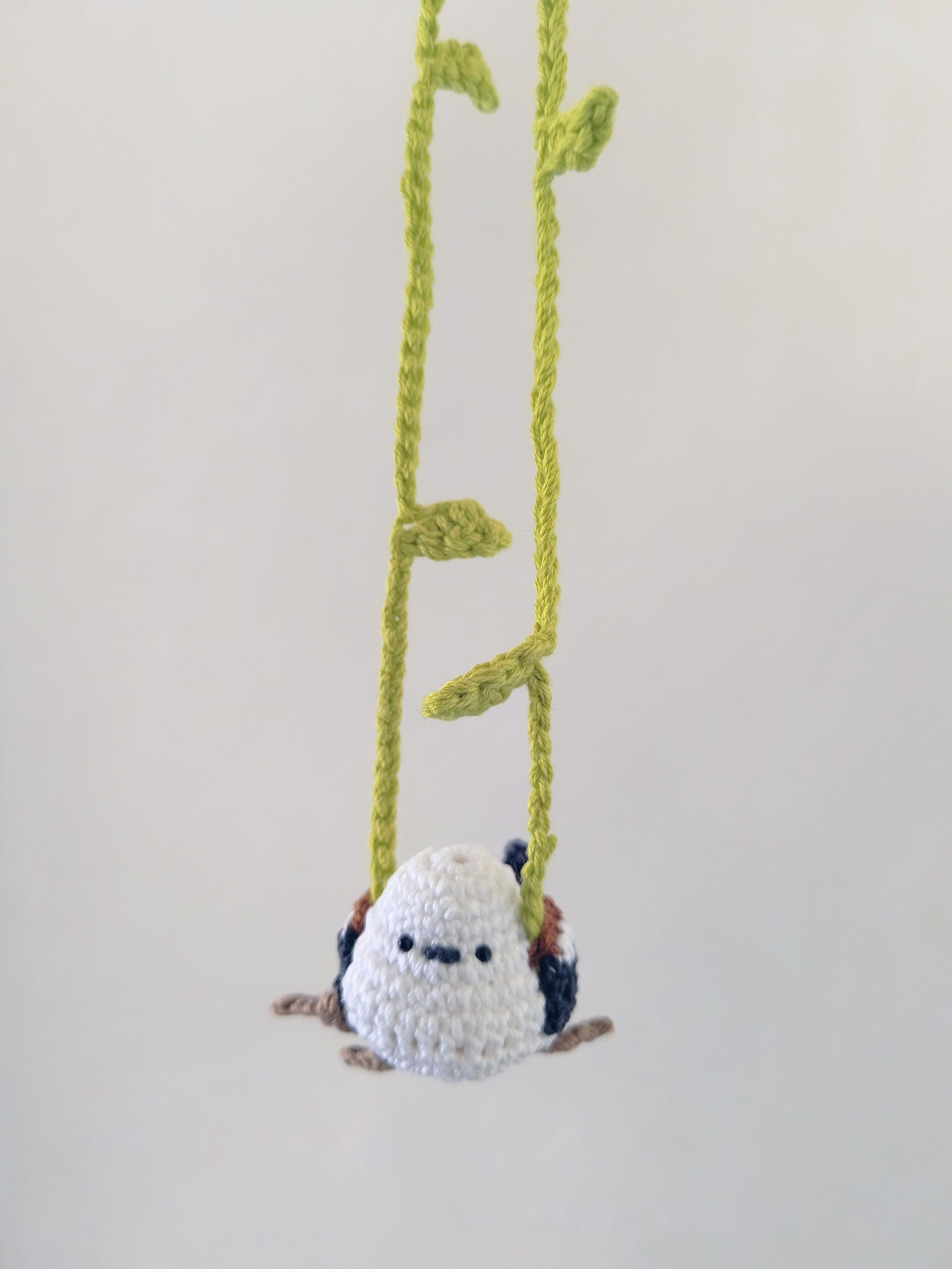 シマエナガが小枝のブランコで遊んでいる様子をイメージして制作しました。