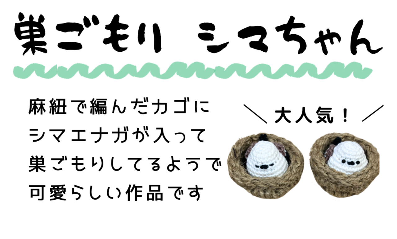 巣ごもりシマちゃんは、小さな身体にたくさんの愛情が詰まった、可愛らしいあみぐるみの置き物です。