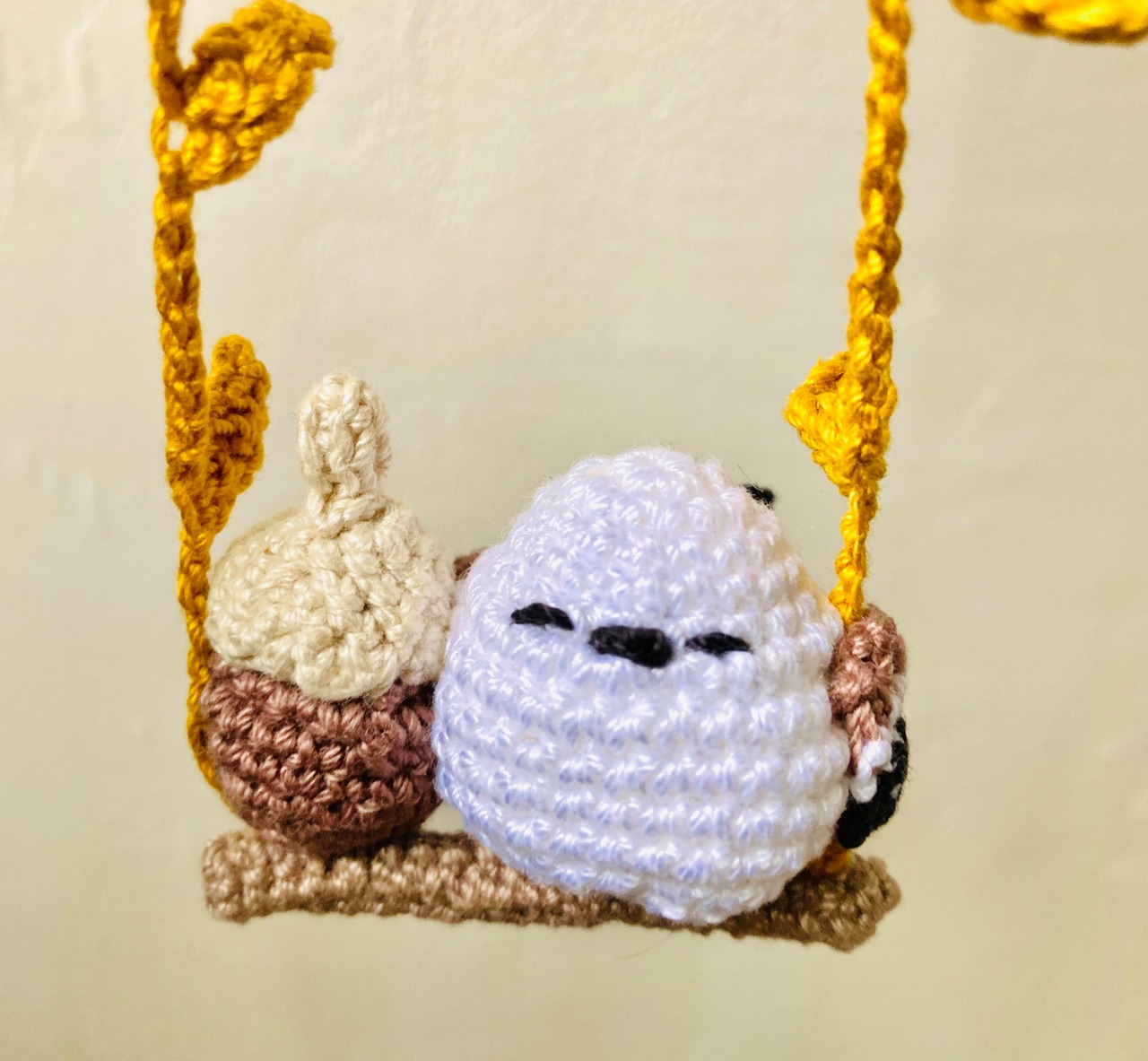 シマエナガが小枝のブランコで遊んでいる様子をイメージして制作しました。