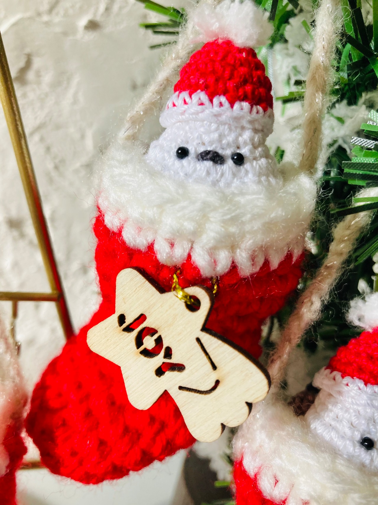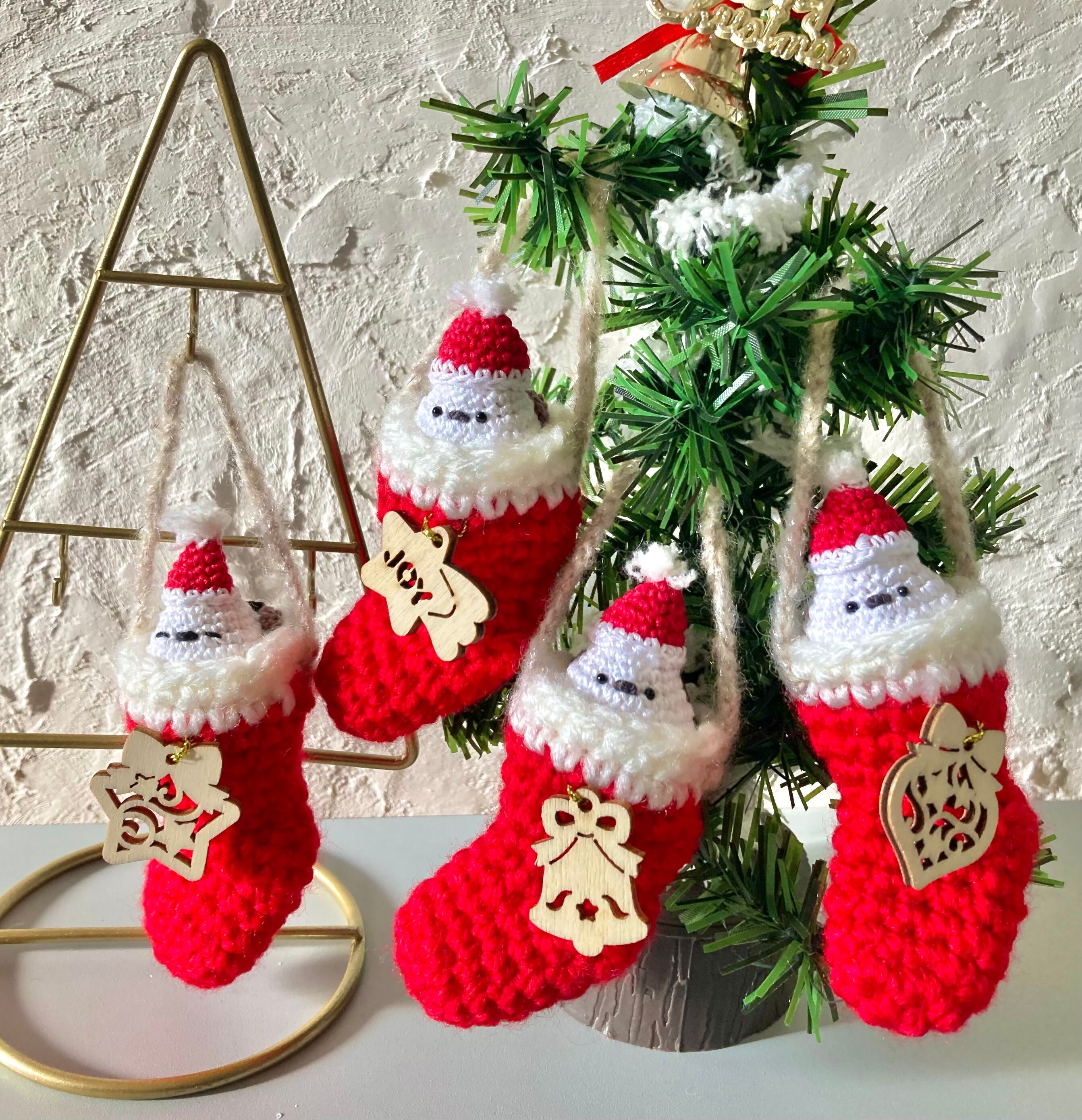 クリスマスソックスに入った、かわいいシマエナガのオーナメントです。